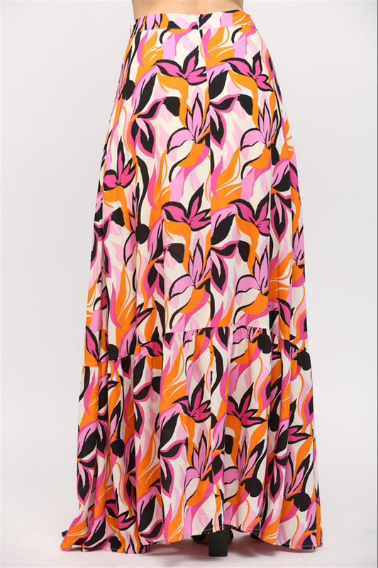 Pink Multi Stripe Tie Waist Long Maxi Skirt